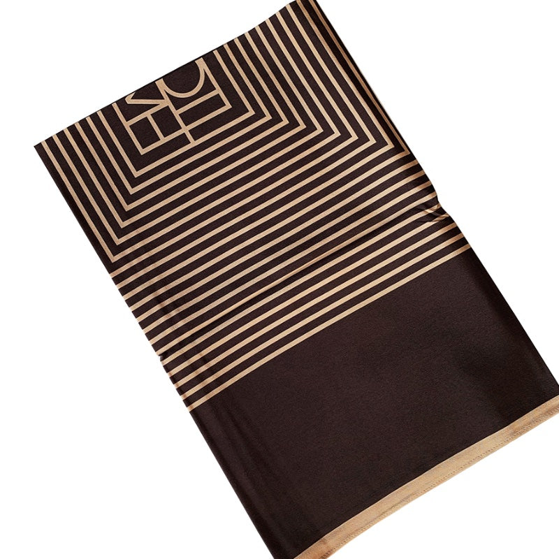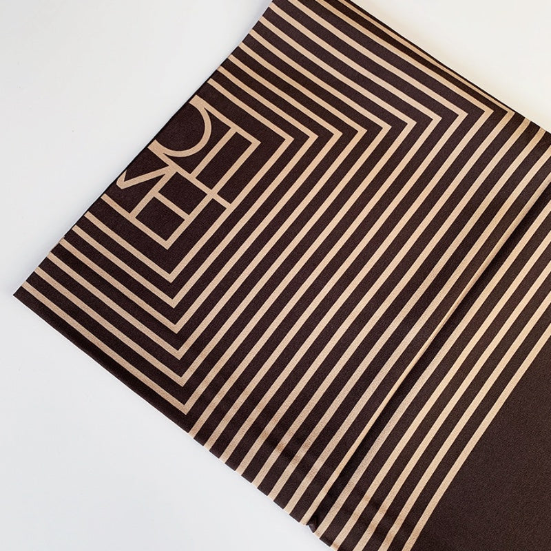 幾何学的なラインが交差し、シンプルでありながら力強いデザイン。高品質なシルクの風合いが、肌触りのよさとともに、上品な輝きを添える。様々なスタイルに合わせて使えるバーサタイルなデザインが、普段着からフォーマルなコーデまで、印象的な演出を叶える。