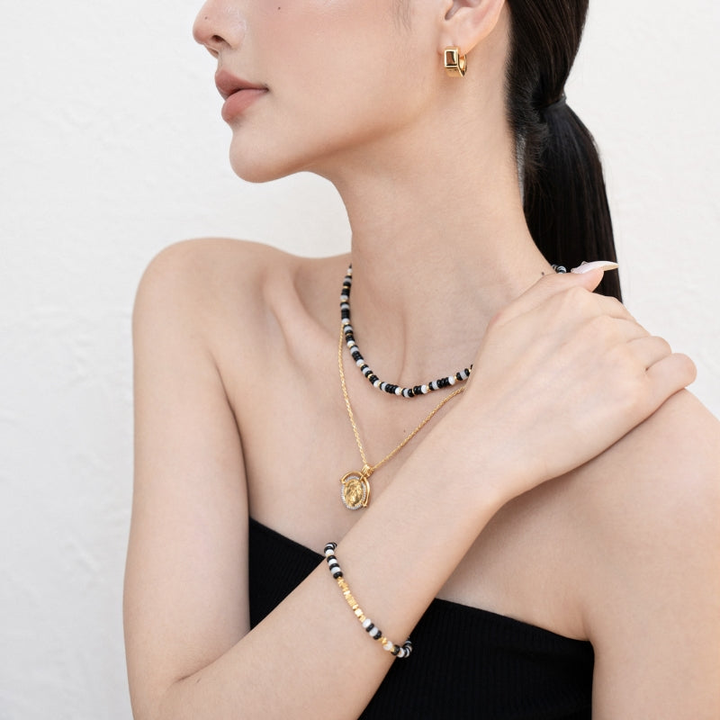 素材:S925 純銀(または 環境保護銅厚メッキ金)+黒瑪瑙 / 紅瑪瑙 / 白ベムーア / 孔雀石 / 黄玉石 / 天河石