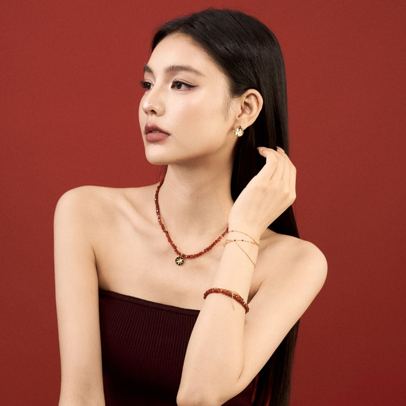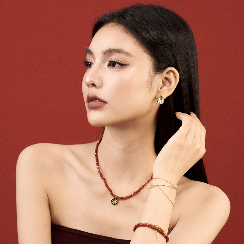 素材:銅メッキ真金 + レッドビーズ(想定,商品写真の質感から推測 )