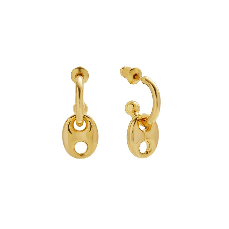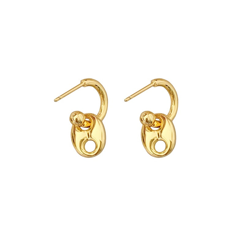 丸みを帯びたラインが織りなす、小さくても存在感のあるデザイン。力強いメッキの金色が、耳元に洗練された輝きを添え、シンプルながらも個性的なフォルムが、普段着からオシャレなコーデまで、様々なシーンで印象的な演出を叶える。