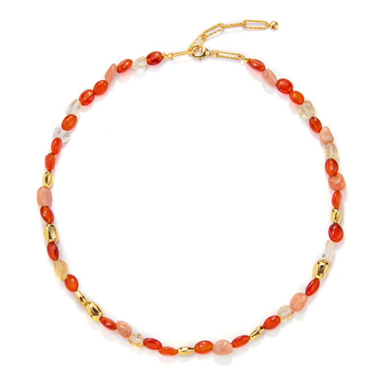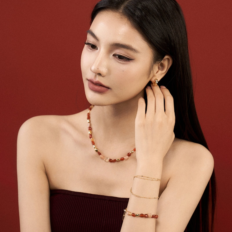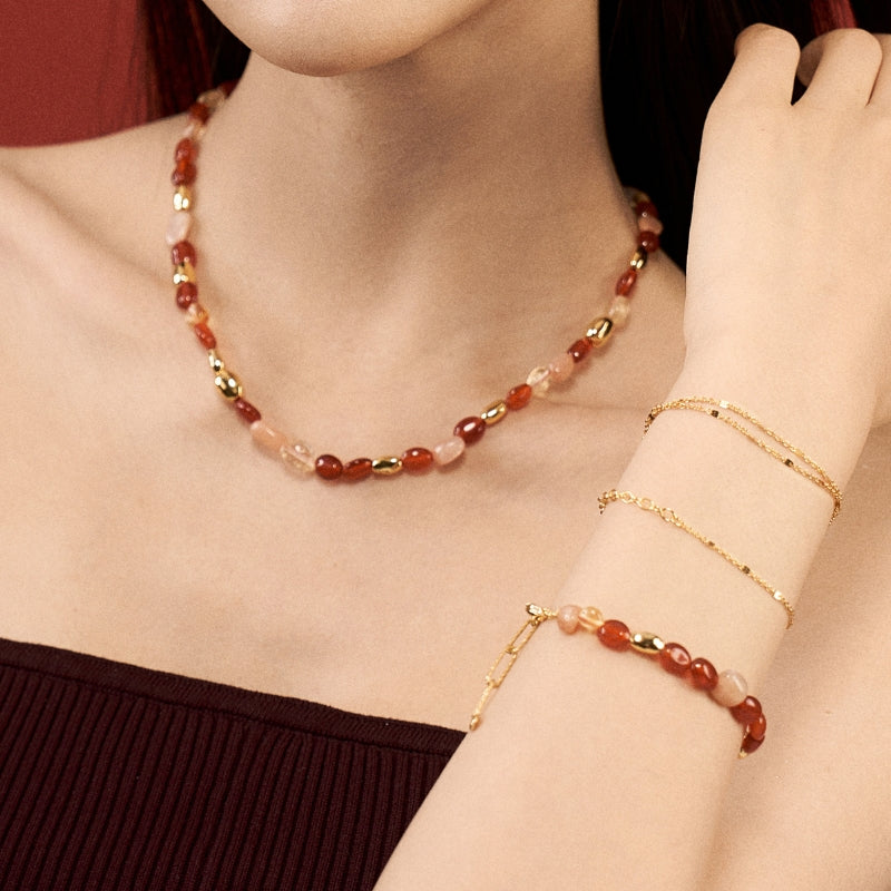 素材:S925 純銀メッキ金+天然紅瑪瑙、太陽石等