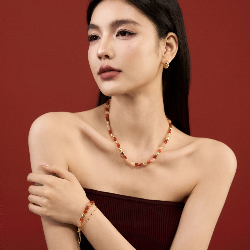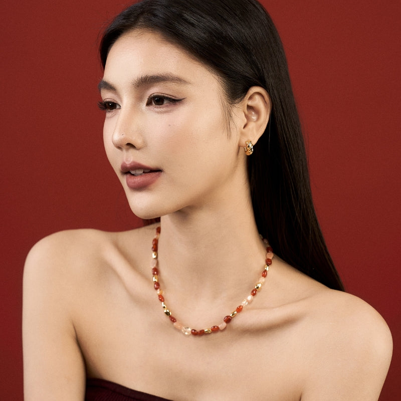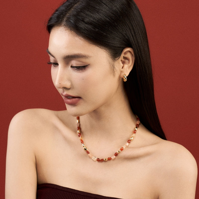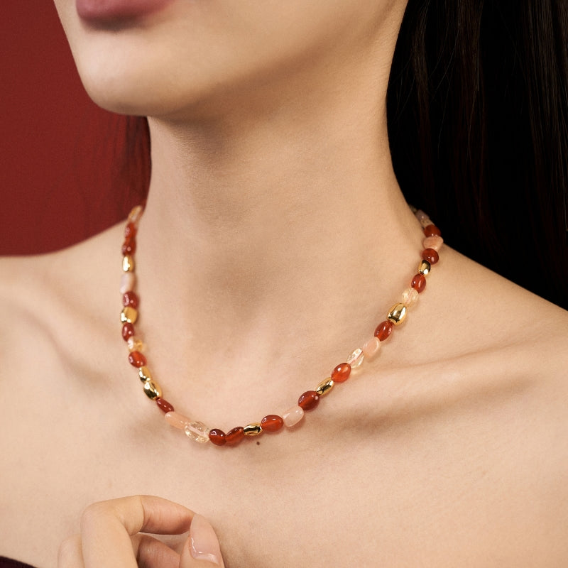 新年紅瑪瑙宝石串メッキネック