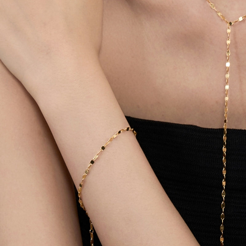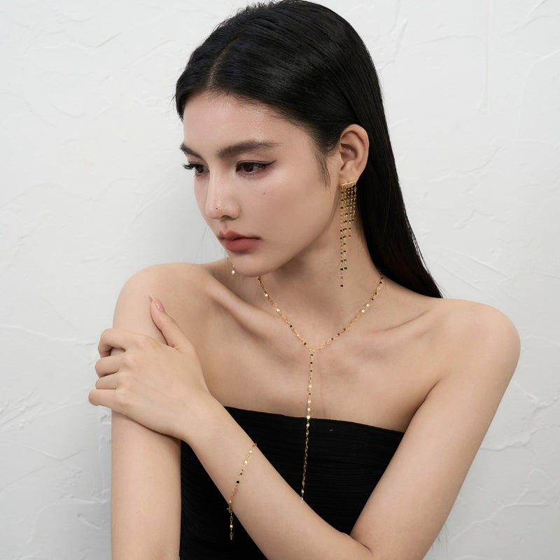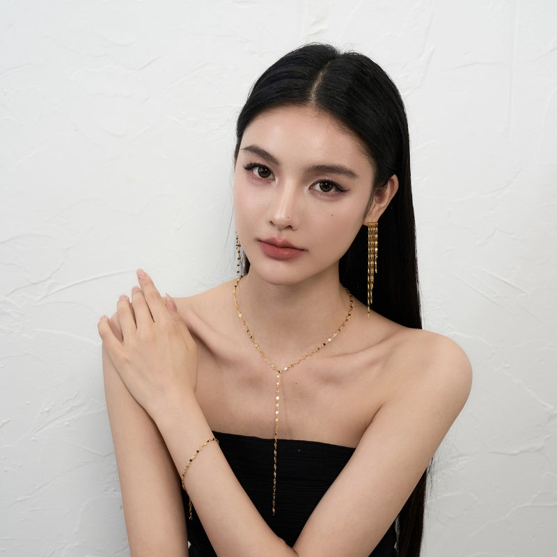 細かいカットが連なり、星屑のような輝きを放つデザイン。シンプルなフォルムが、軽やかな存在感を演出し、手元に清らかで洗練された魅力を与える。角度によって変化する光の反射が、日常の装いにもエレガントなアクセントを加え、「闪耀明星」シリーズのような、きらめく輝きを演出する。