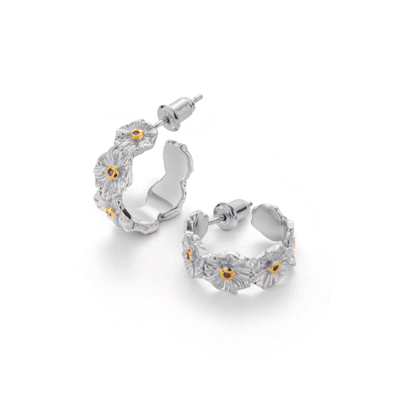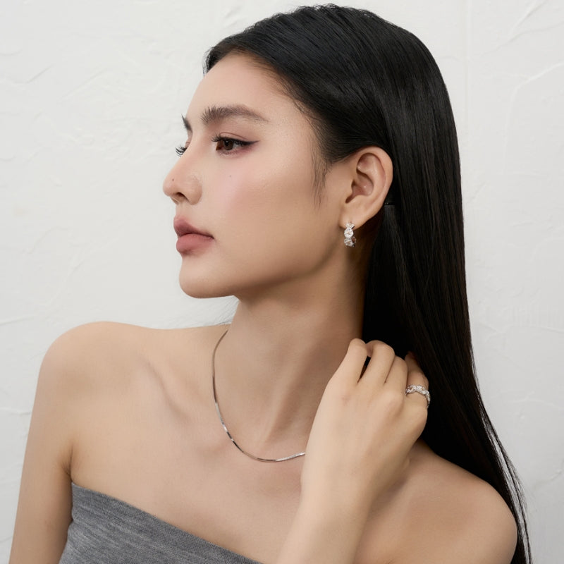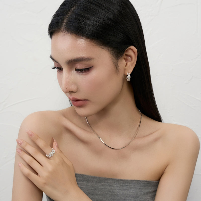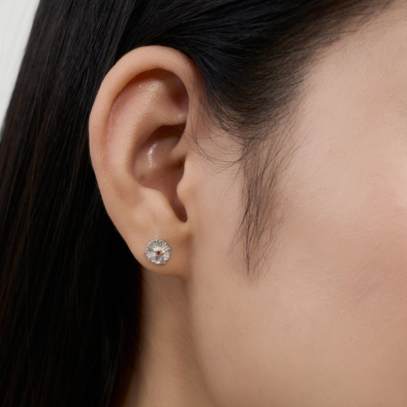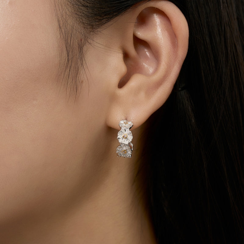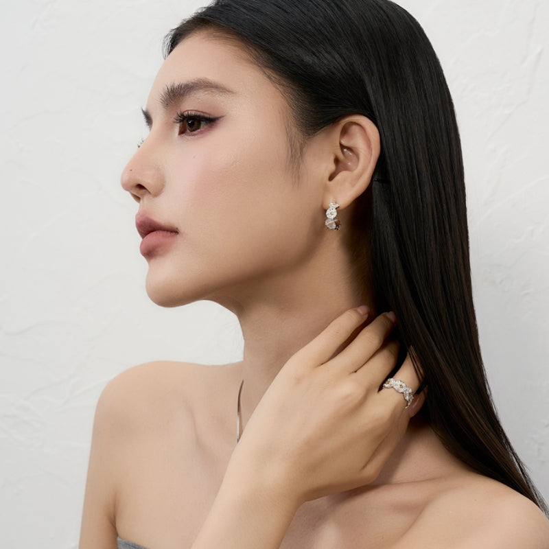 繊細な花びらの曲線が織りなす立体的なデザイン。繊細さとエレガンスを併せ持つフォルムが、耳元に存在感と洗練された輝きを添える。角度によって異なる光沢を放ち、どの瞬間も印象的に演出します。