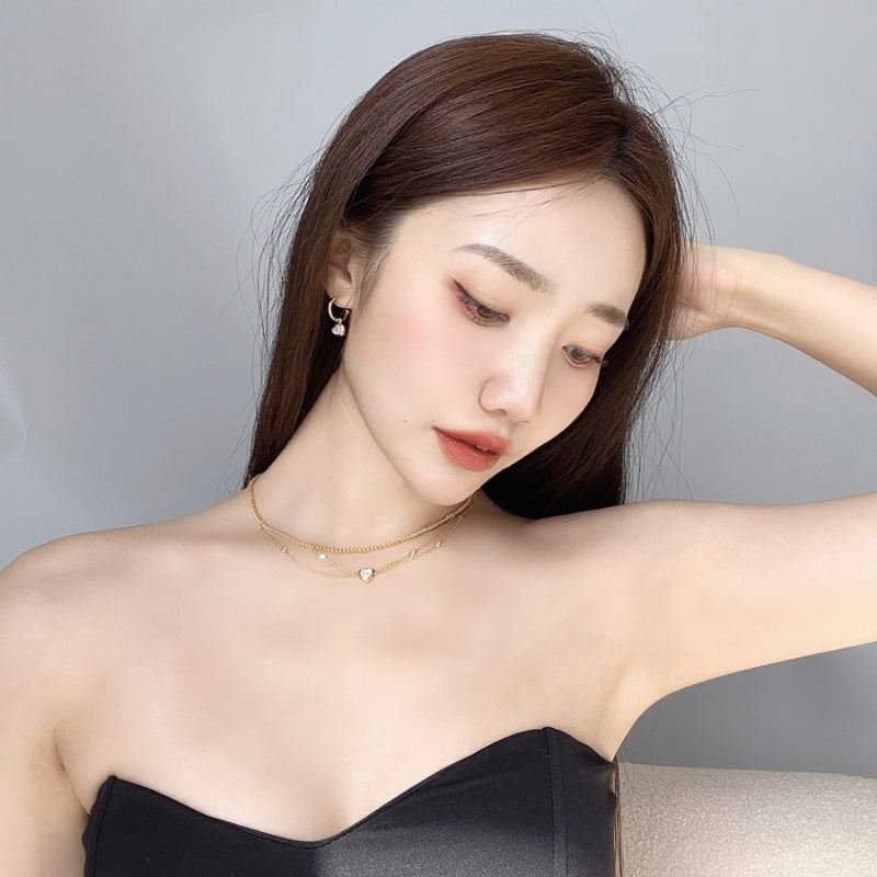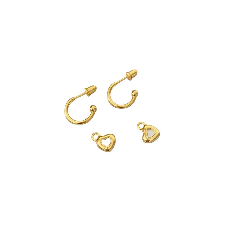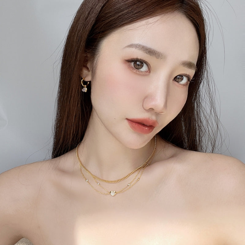 カールしたホックフォルムとハートペンダントが一体となり、繊細でありながら遊び心あふれるデザインを生み出す。メッキの艶やかな輝きが、白ベムーアの柔らかい光沢を引き立て、耳元に可憐でありながら大人の雰囲気を与える。角度によって揺れるペンダントの輝きが、日常の装いにもエレガントなアクセントを加え、小さな幸せを纏った雰囲気を演出する。