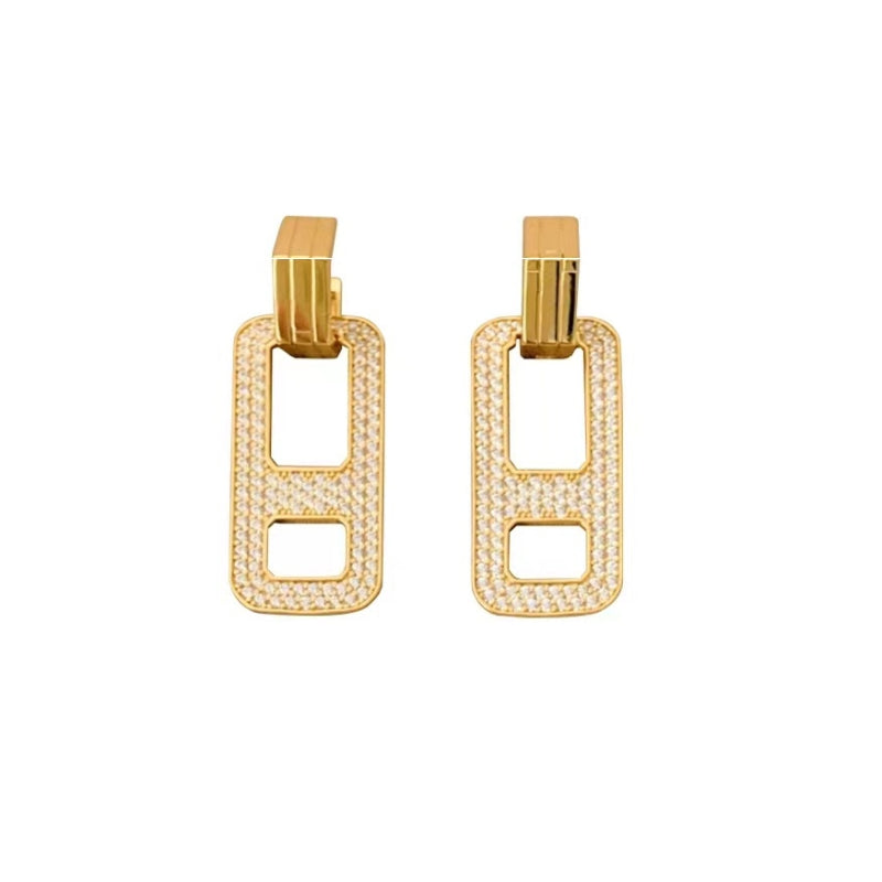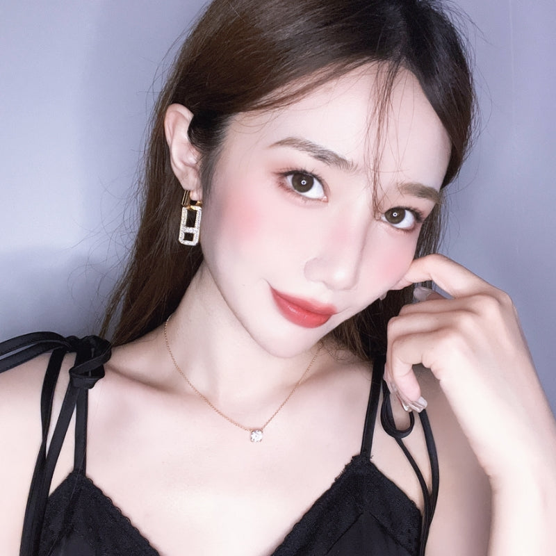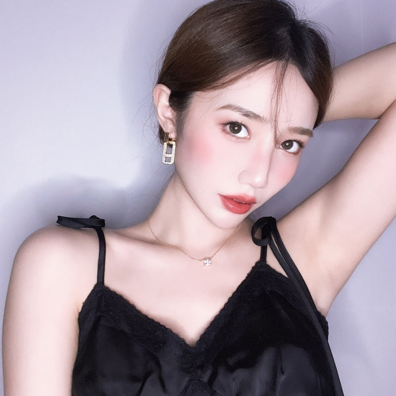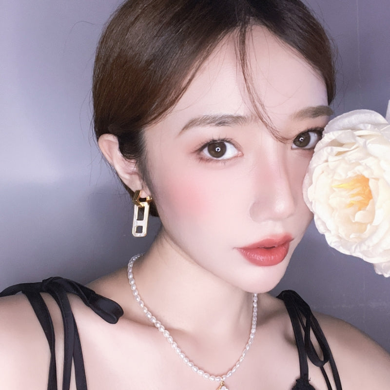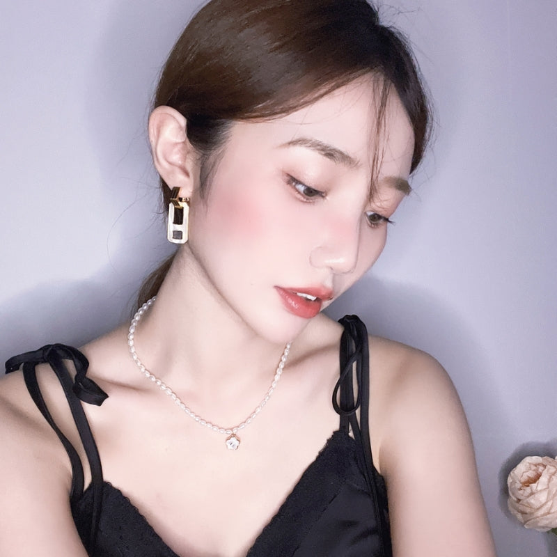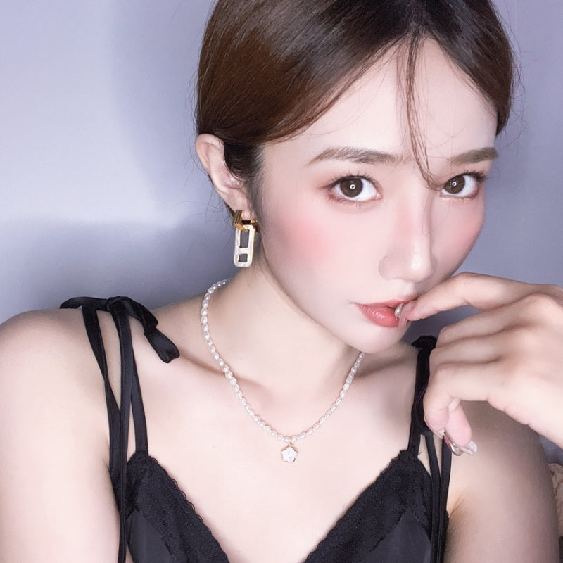 幾何学的なラインが交差し、立体的なデザインを構築。力強いフォルムと繊細なパールマザーオパールの輝きが融合し、角度によって異なる光沢が耳元に存在感と洗練された雰囲気を添える。日常から特別な場面まで、印象的な演出をサポートする。