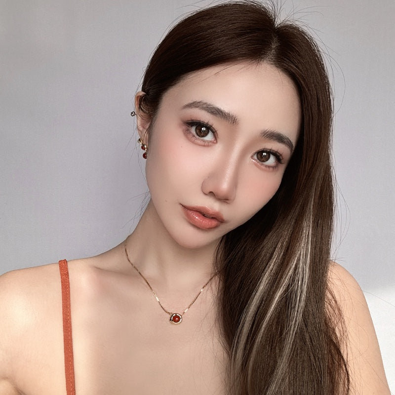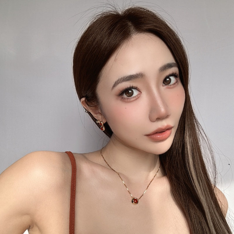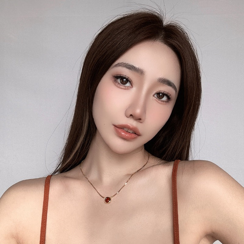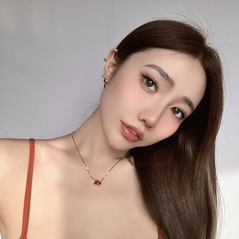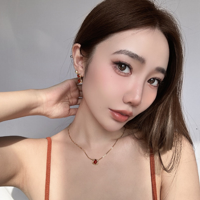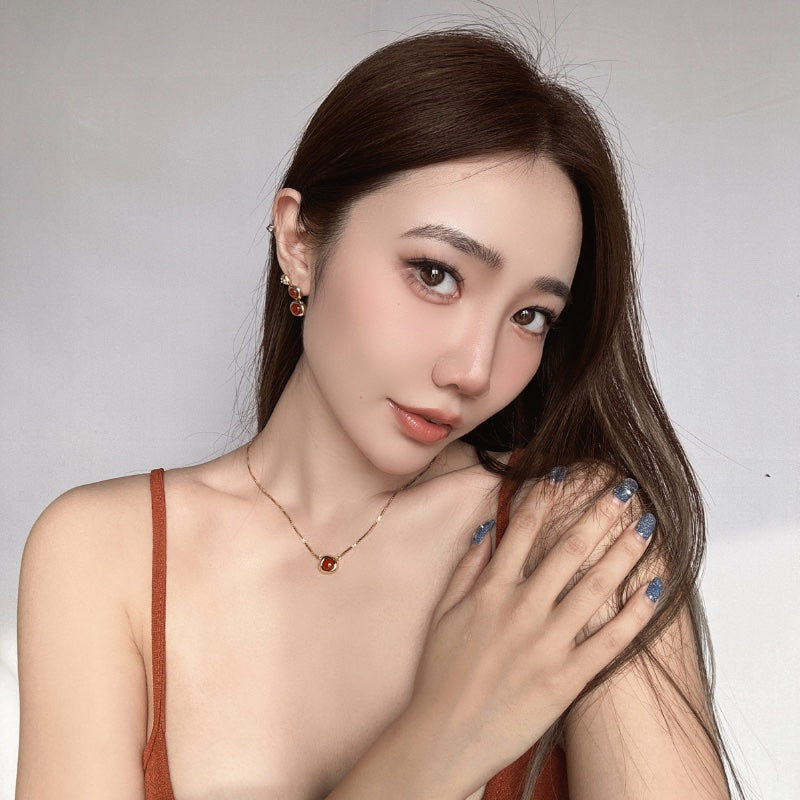 シンプルなチェーンに、レッドジェムストーンを落とし込み、力強さとエレガンスを併せ持つデザインとなっている。メッキの艶やかな輝きが、ジェムの深みのある色合いを引き立て、首元に存在感と洗練された輝きを添える。角度によって変化する光沢が、様々なシーンで印象的な演出を叶える。