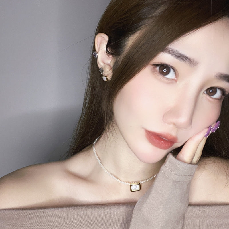 コンパクトなハートフレームに、紅瑪瑙が彩られ、可憐でありながら華やかなデザインを体現。メッキの艶やかな輝きが、紅瑪瑙の鮮やかな色彩を引き立て、耳元に可愛らしくて個性的な存在感を与える。角度によって変化する瑪瑙の光沢が、日常の装いにもポップで楽しいアクセントを加え、小さな幸せを演出する。