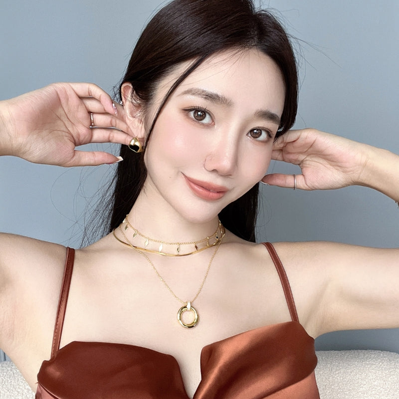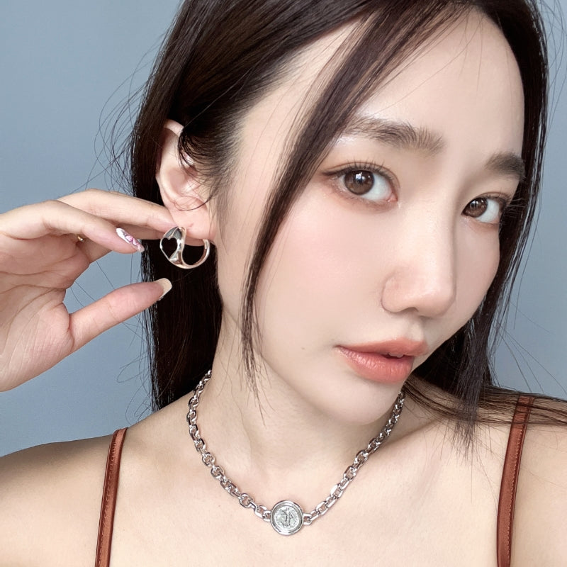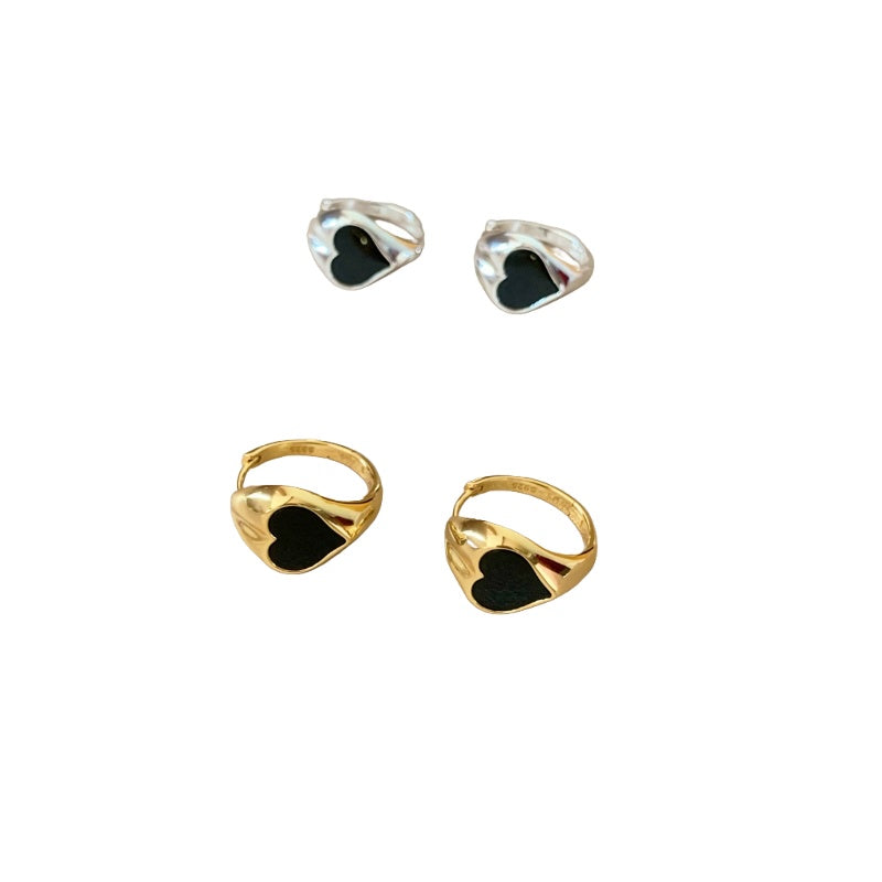 ホック型フレームに、黒瑪瑙のハートが彩られ、シックでありながら可愛らしいデザインを体現。メッキの艶やかな輝きが、黒瑪瑙の深みのある光沢を引き立て、耳元に大人の品格とソフトな存在感を与える。角度によって変化する瑪瑙の輝きが、日常の装いにもミステリアスなアクセントを加え、クールでありながら愛らしい雰囲気を演出する。
