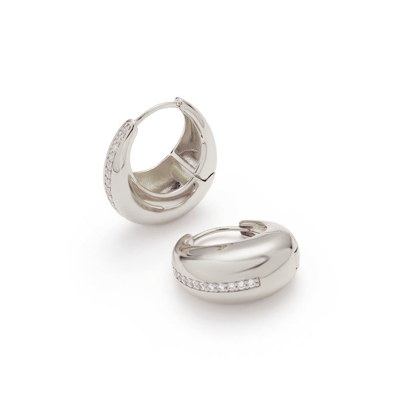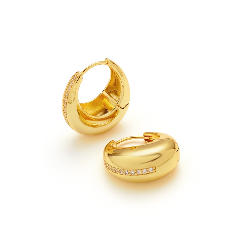 滑らかな曲線が織りなす立体的なデザイン。力強さとエレガンスを併せ持つフォルムが、顔まわりに存在感と洗練された輝きを添える。角度によって異なる光沢を放ち、どの瞬間も印象的に演出します。