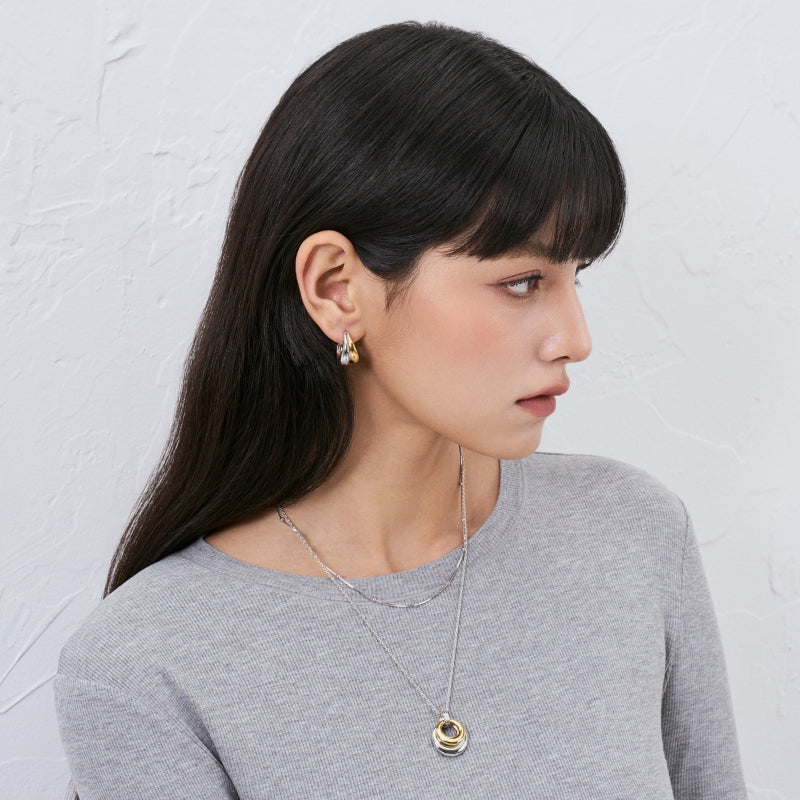 18KGP 双環水滴耳饰