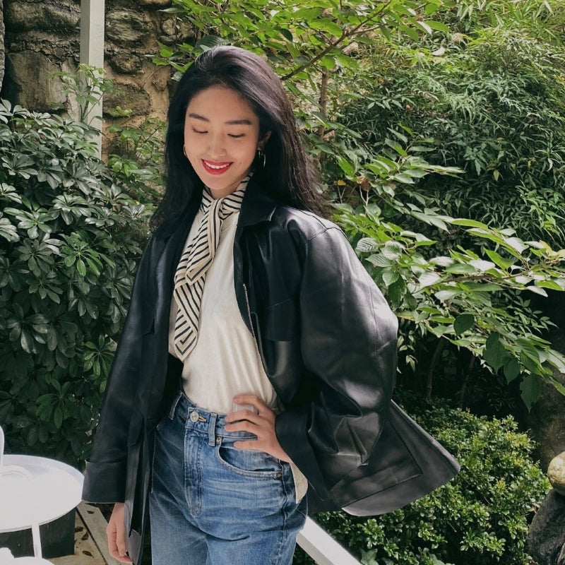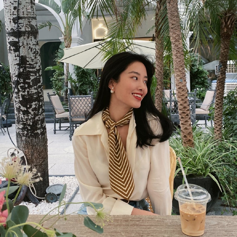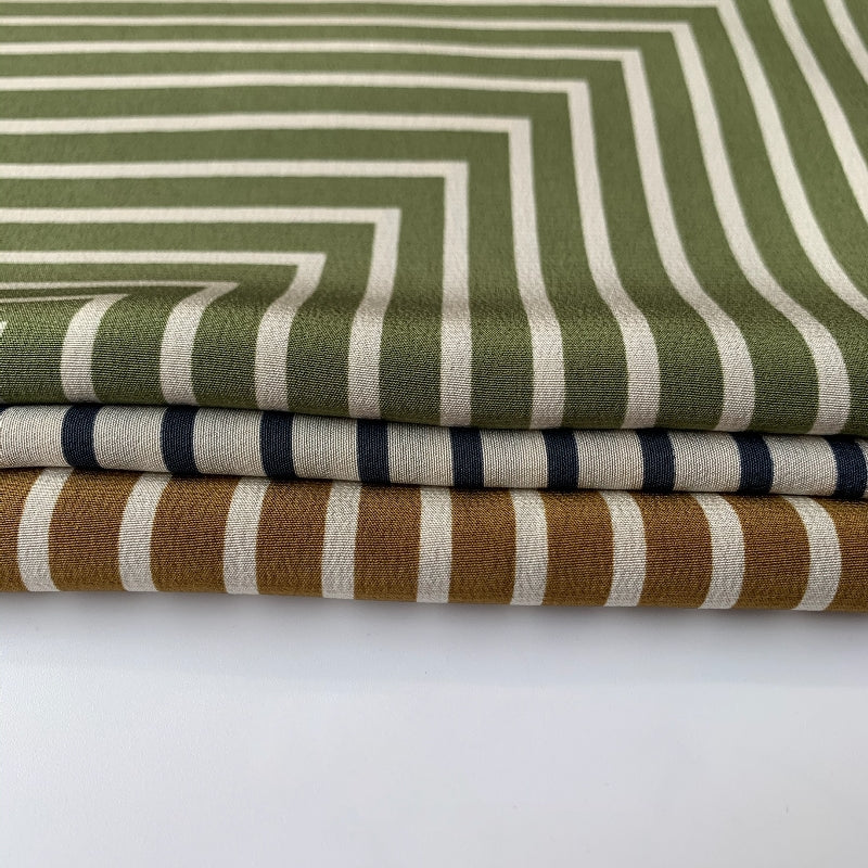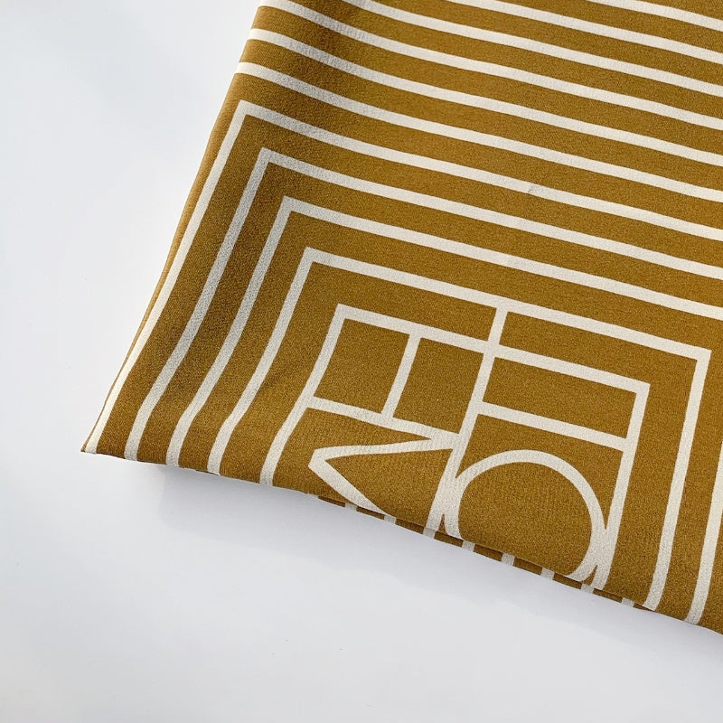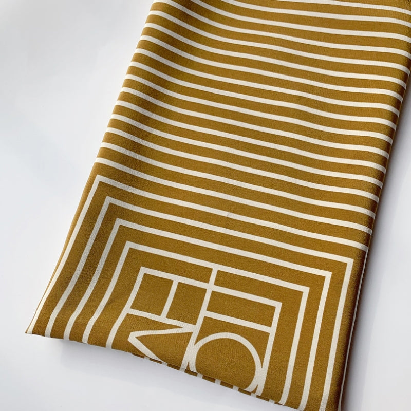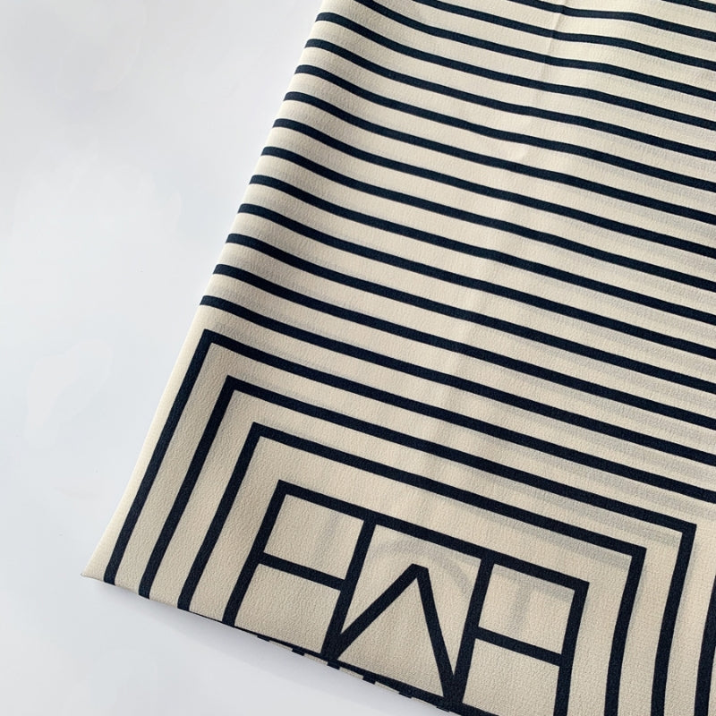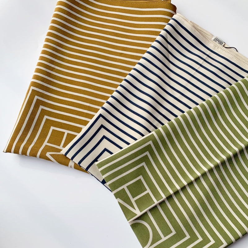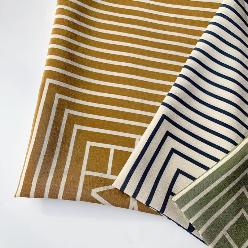 シンプルなストライプ柄に幾何学模様を組み合わせたデザイン。カラフルなカラーリングが、力強さとエレガンスを併せ持つ印象を与える。角度や光の加減によって異なる雰囲気を演出し、どのシーンでも印象的に着こなえます。