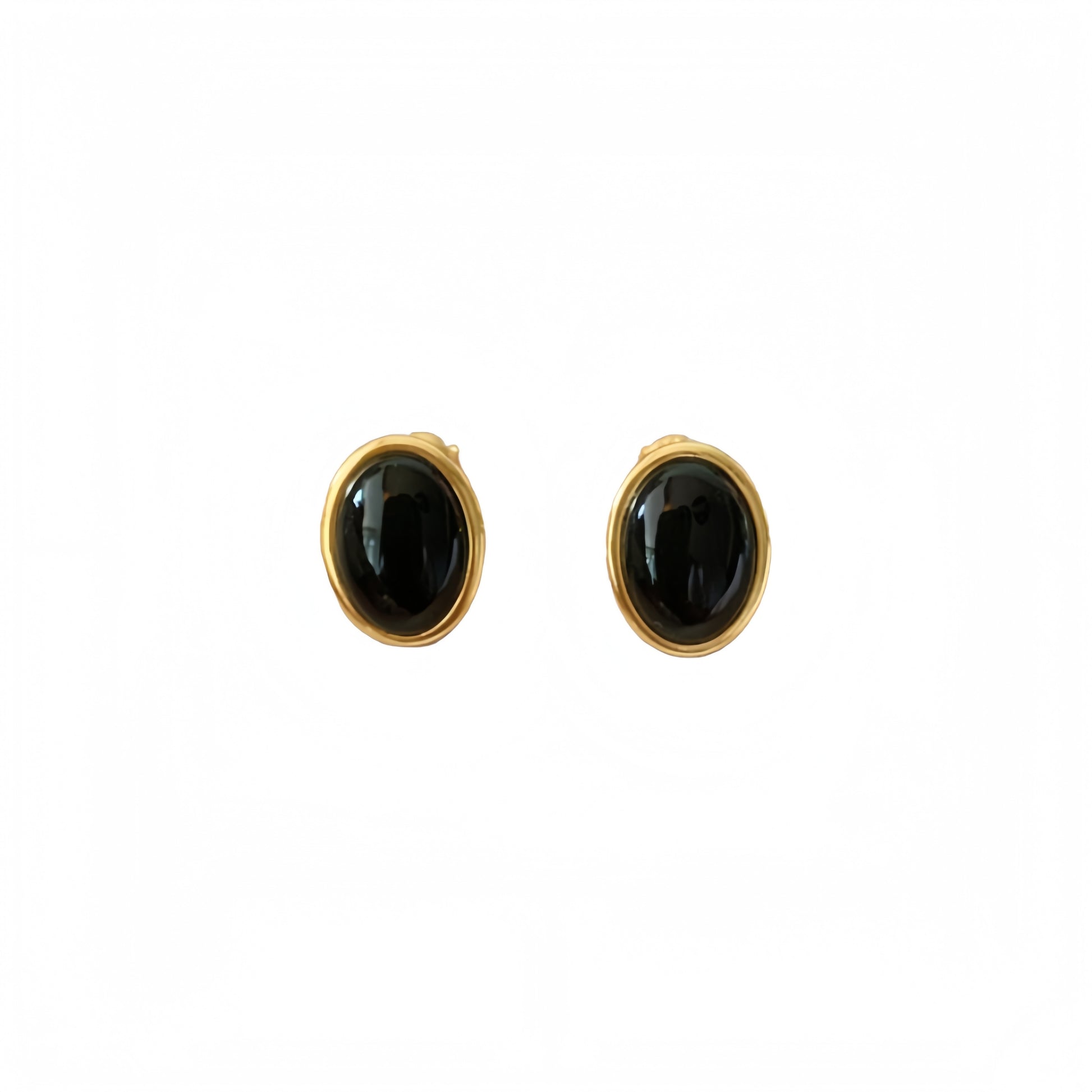 楕円型の深海白ベムーアが、メッキの金色のフレームに包まれ、シンプルでありながらエレガントなデザインとなっている。白ベムーアの繊細な光沢とメッキの輝きが、耳元に存在感と洗練された雰囲気を添える。角度によって変化する光沢が、様々なシーンで印象的な演出を叶える。