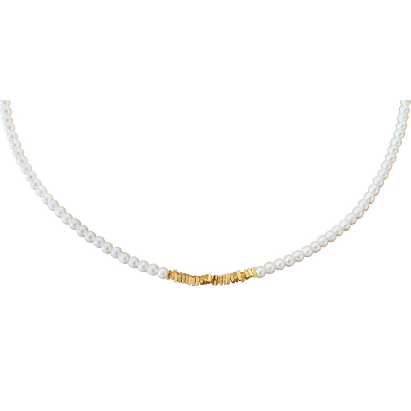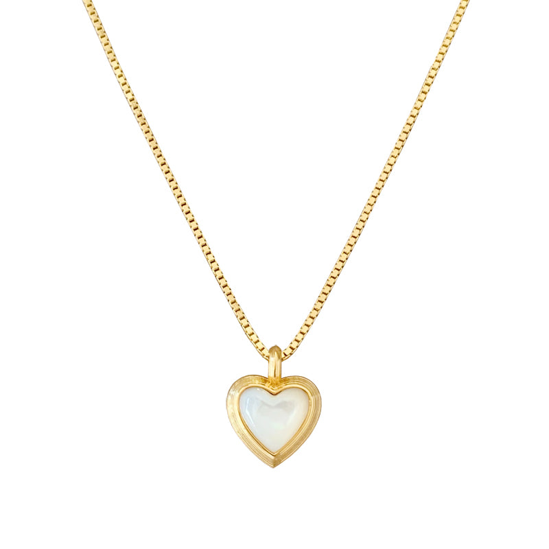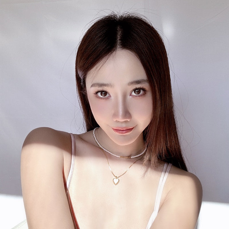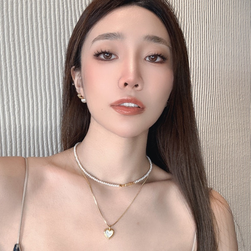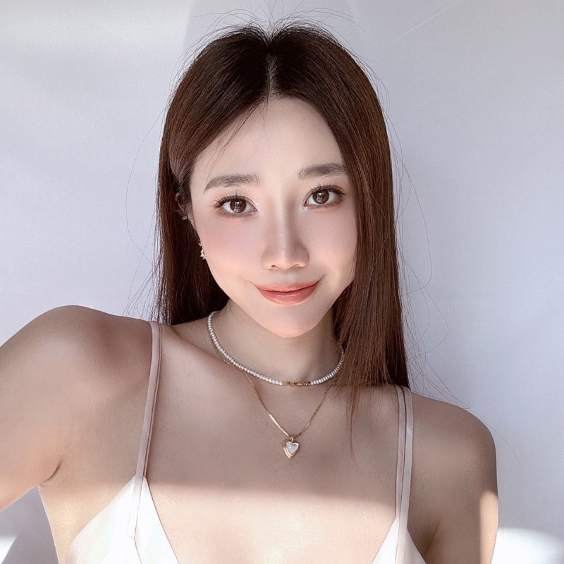 ベビーパールのチェーンとシンプルなメタルチェーンが重なり、ハートペンダントの白ベムーアが輝き、レトロでありながらエレガントなデザインを生み出す。力強さとエレガンスを併せ持つフォルムが、首元に存在感と洗練された輝きを添え、角度によって変化する光沢が、優雅な雰囲気を演出し、どの瞬間も印象的に輝かせます。