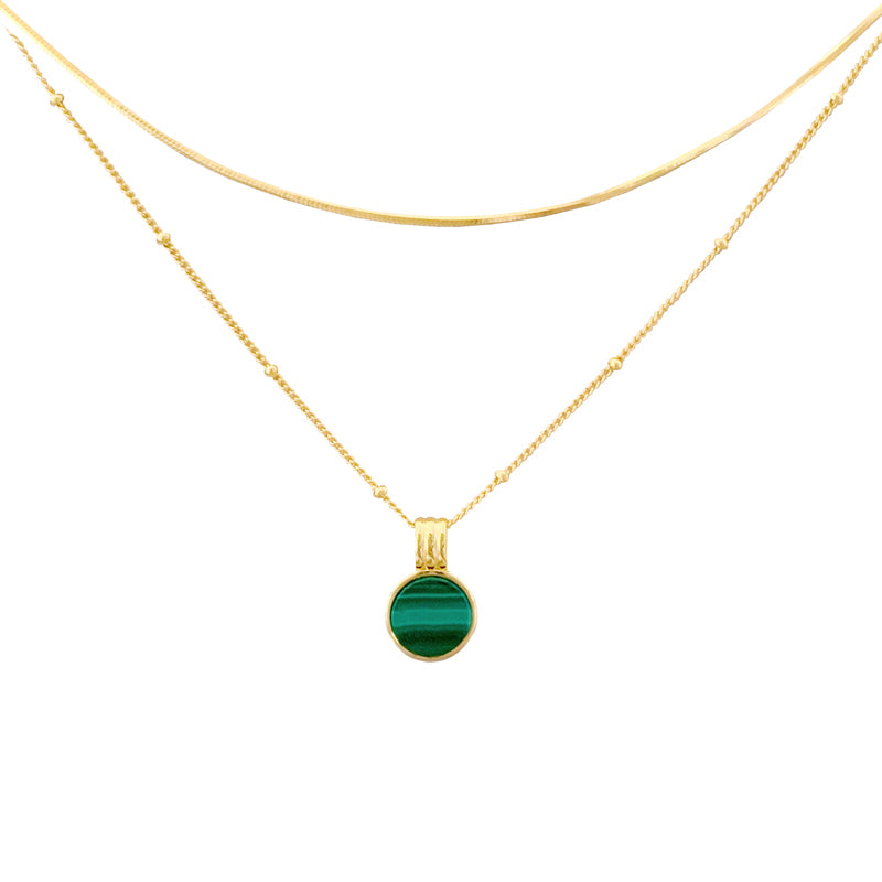 ペンダントチェーン:銀メッキ金+天然黒瑪瑙 / 緑孔雀石 / 白ベムーア