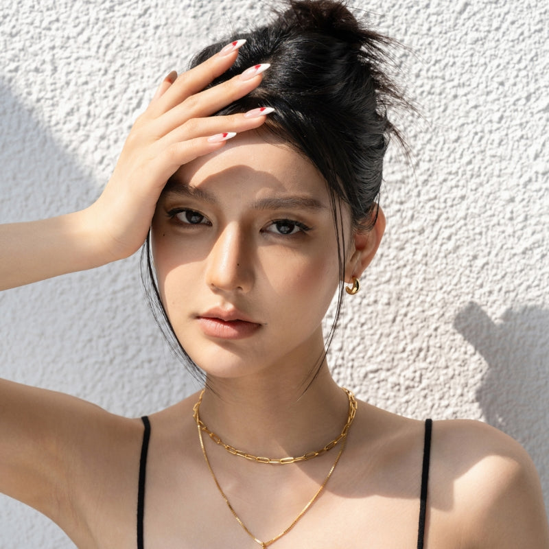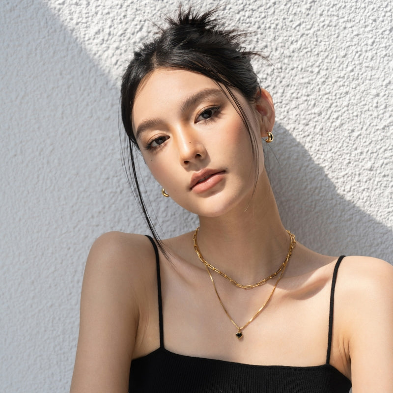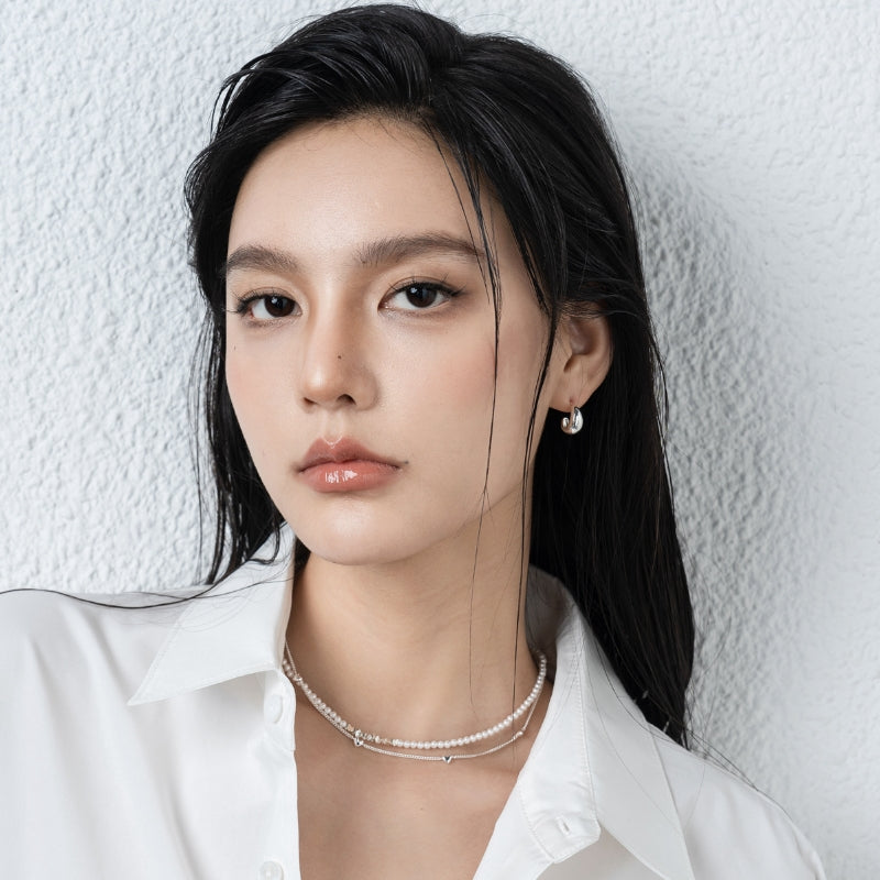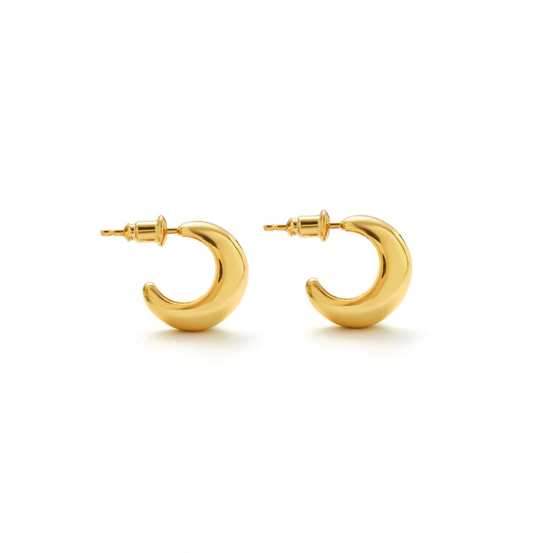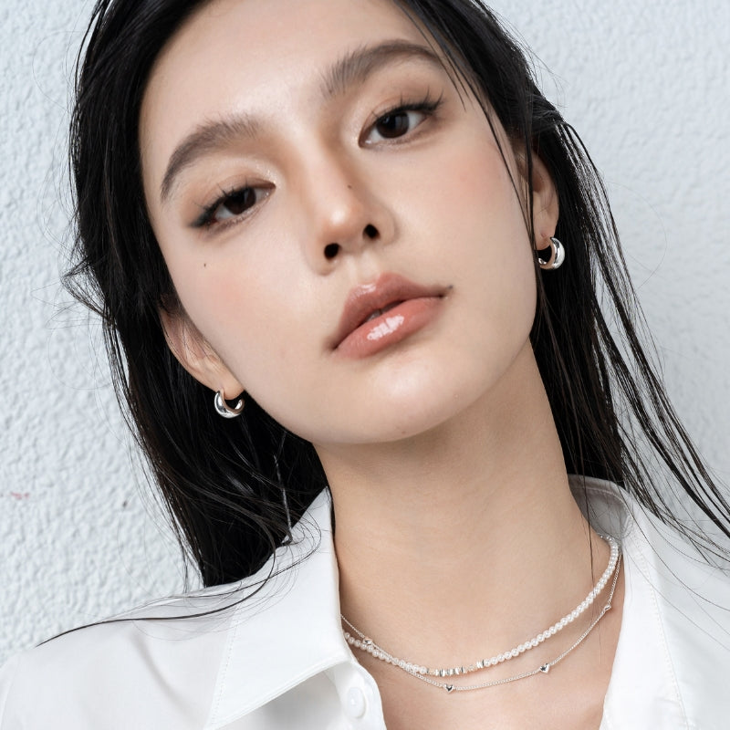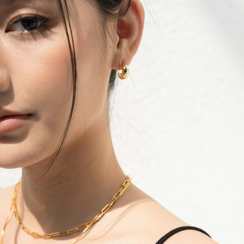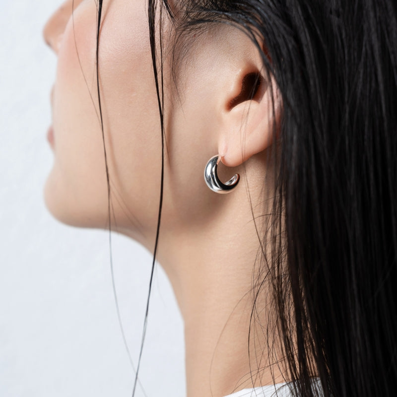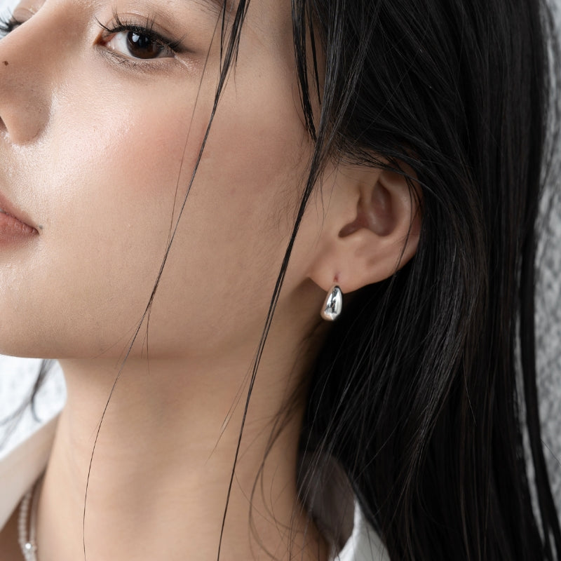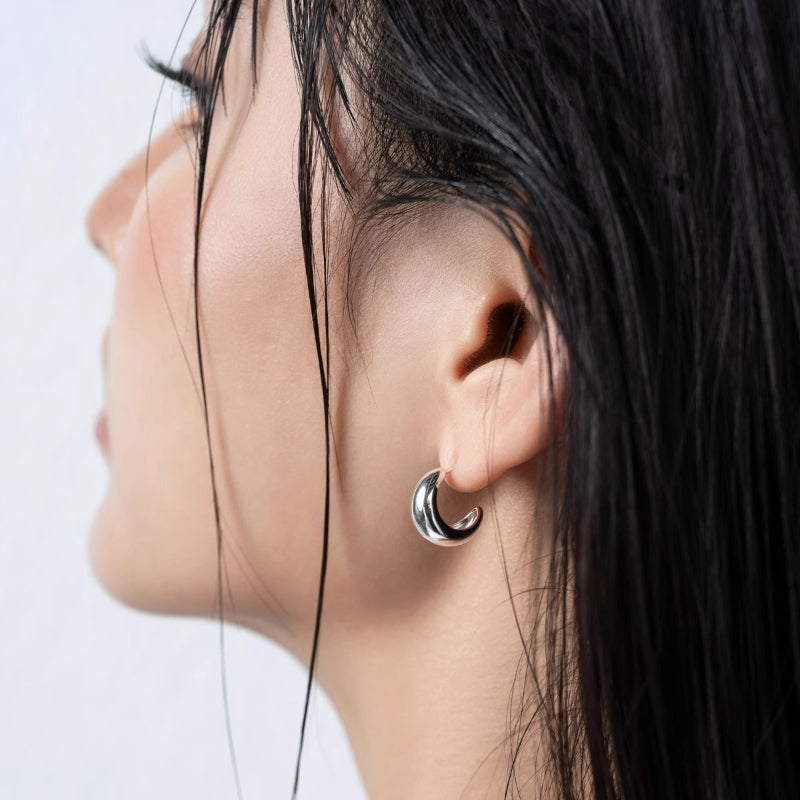 滑らかな曲線が立体的なムーン型デザインを形成。力強さとエレガンスを兼ね備えたフォルムが、顔まわりに存在感と洗練された輝きを添える。角度によって異なる光沢を放ち、どの瞬間も印象的に演出します。
